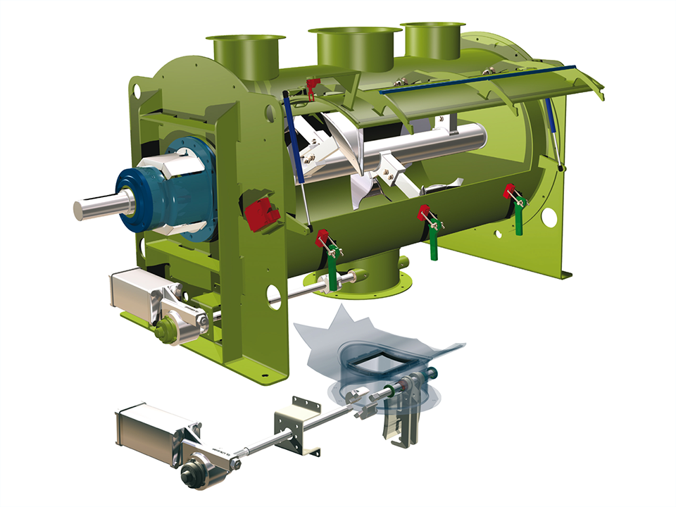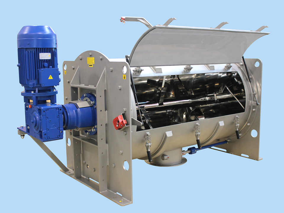 粉体同士の混合や粉体に液体を添加した混合、泥状または低粘度ペーストを混合する装置です。 混合ツールの特殊な形状と位置・回転速度の組合せにより粒子径・比重の異なる製品を短時間で高い精度で混合する事が可能です。 また、排出ゲートを大きくとることで短時間での排出、製品残留防止に寄与しております。