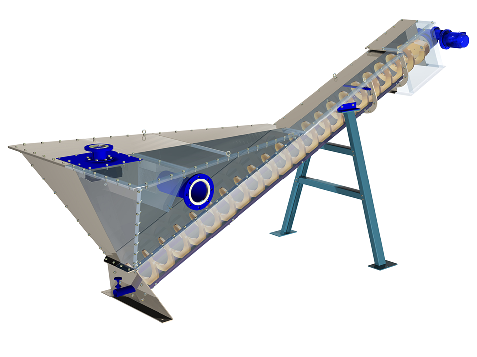 スクリューは高張力鋼製が標準であり、耐摩耗、高強度搬送を可能としています。